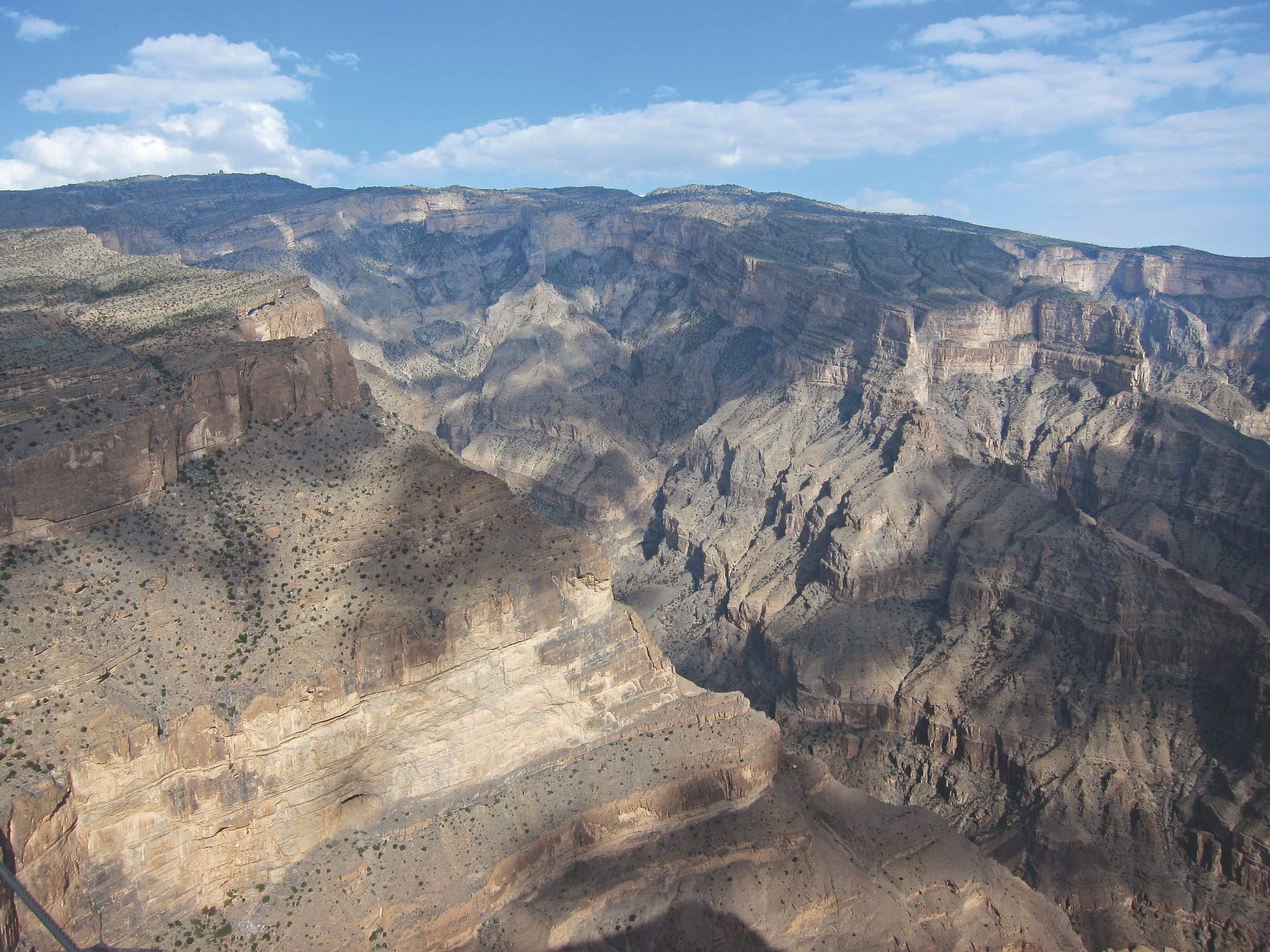 Am nächsten Morgen verliessen wir die Wüste und fuhren Richtung Jebel Shams, dem «Grand Canyon» Omans. Unterwegs besuchten wir das Bait Al Safah Museum und erhielten spannende Einblicke in das traditionelle Leben der Omanis. Dann ging es in die Berge, immer höher hinauf, bis zum Gipfel des Jebel Shams, wo wir eine grandiose Aussicht genossen und die kühle Bergluft spürten. Im Hotel liessen wir den Tag mit einem weiteren atemberaubenden Sonnenuntergang ausklingen.